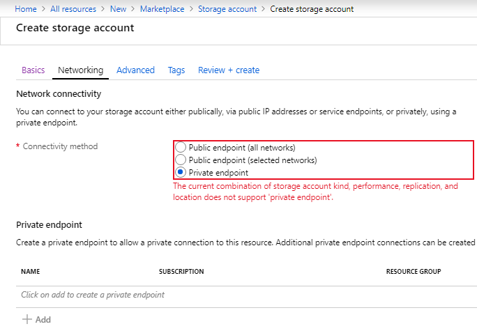 The configuration is straight forward. In the networking settings of the resource, you select Private endpoint for the connectivity method and create a new endpoint.