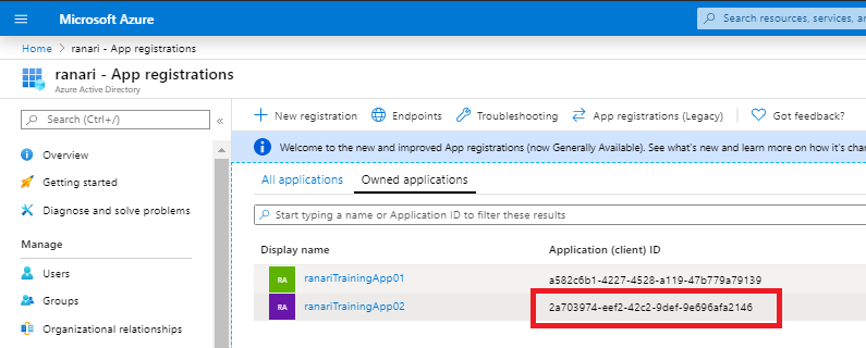 To solve the error message, now that we have the redirect_uri or reply_url, we go to the App registrations in Azure Active Directory and search for the client ID.