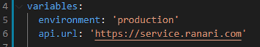 - The variables to be replaced are defined in the YML pipeline. Example from our production: